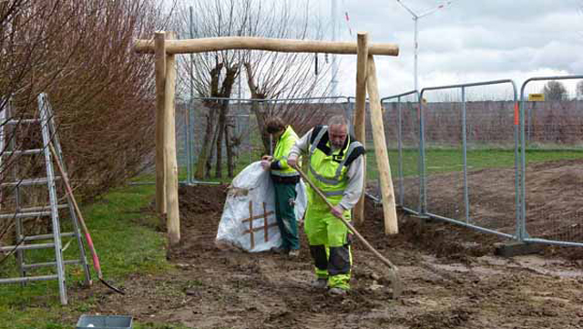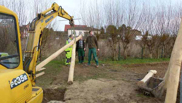 Aufstellen der neuen Spiegeräte durch die Dorfinteressengemeinschaft von Wanlo!