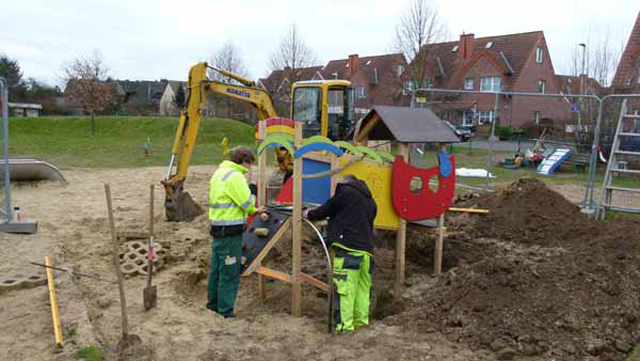 Die Kosten von rund 10.000,–€ für Spielgeräte und Aufstellung werden von der DIG übernommen, die notwendigen Tielbauarbeiten übernimmt die Stadt.